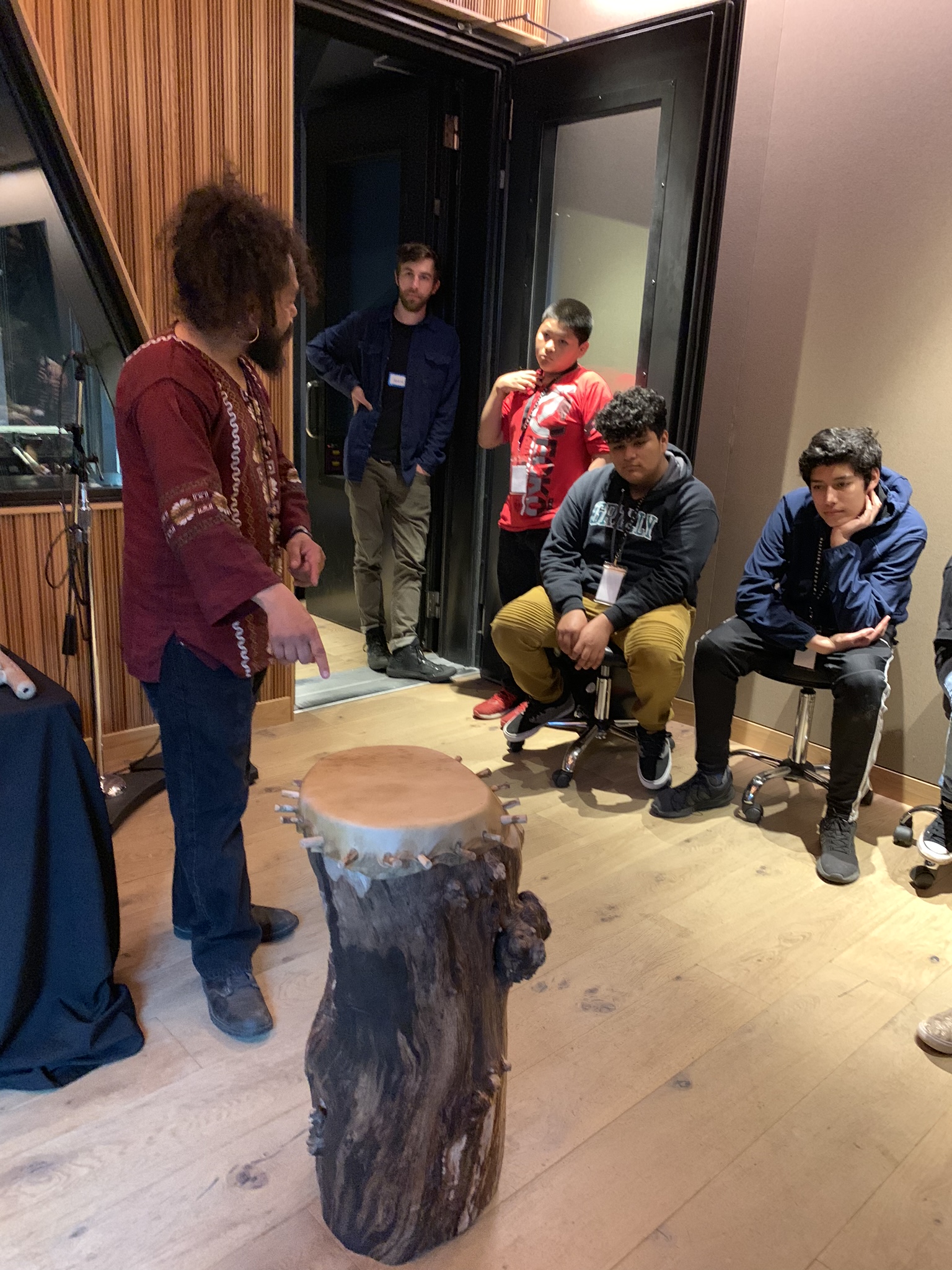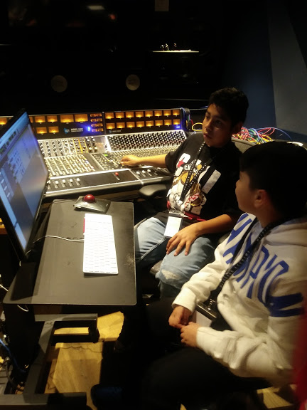 This field trip was sponsored by N.M. Bodecker Creative Foundation who provided use of their in house recording studio and staff time to support our curriculum with Latino Network. Bodecker Foundation Creative Director, Chris Funk, and Audio Engineer, Adam Lee, gave the students a crash course on recording studio basics. None of the students had ever been in a professional recording studio before, but quickly learned the ropes. It was an amazing experience for everyone involved.