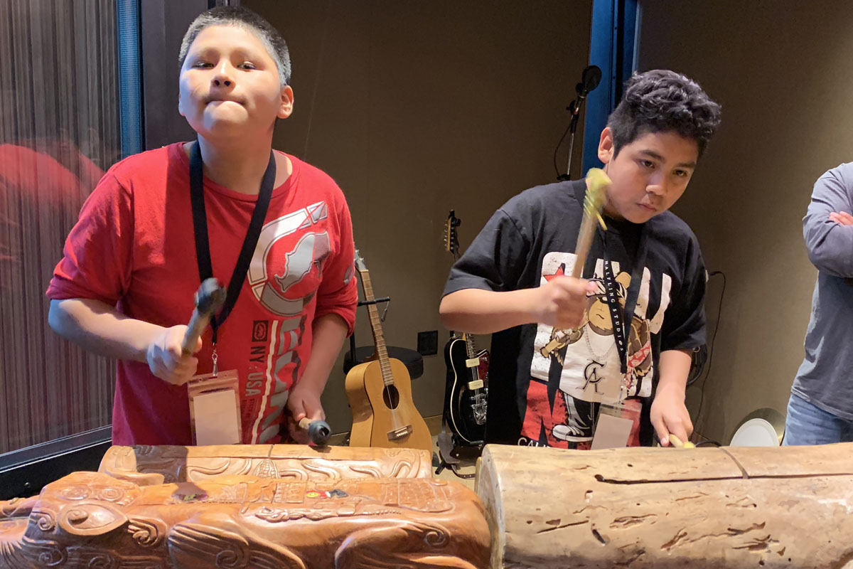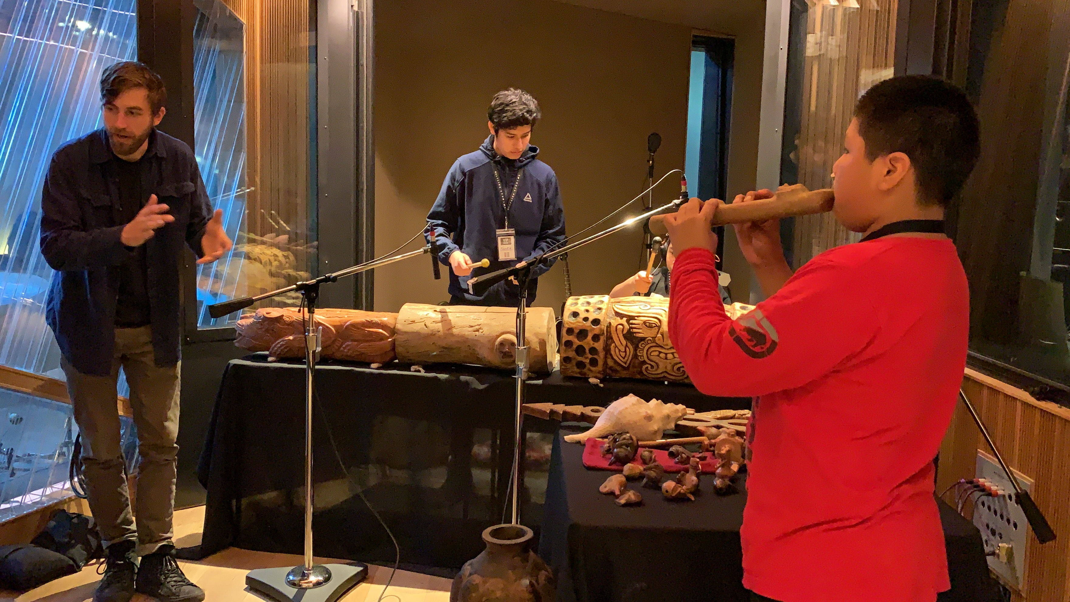 This week we welcomed special guest artist Eduardo Cruz and his group Huehca Omeyocan. They taught our students about Mexica musical tradition and culture. The students were able to try out prehispanic percussion and wind instruments and learn how to record, and be recorded in a professional studio. We will be using audio samples from these recordings to work on their digital compositions for the class.